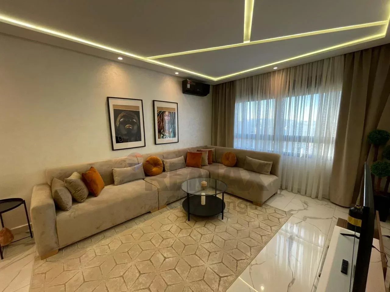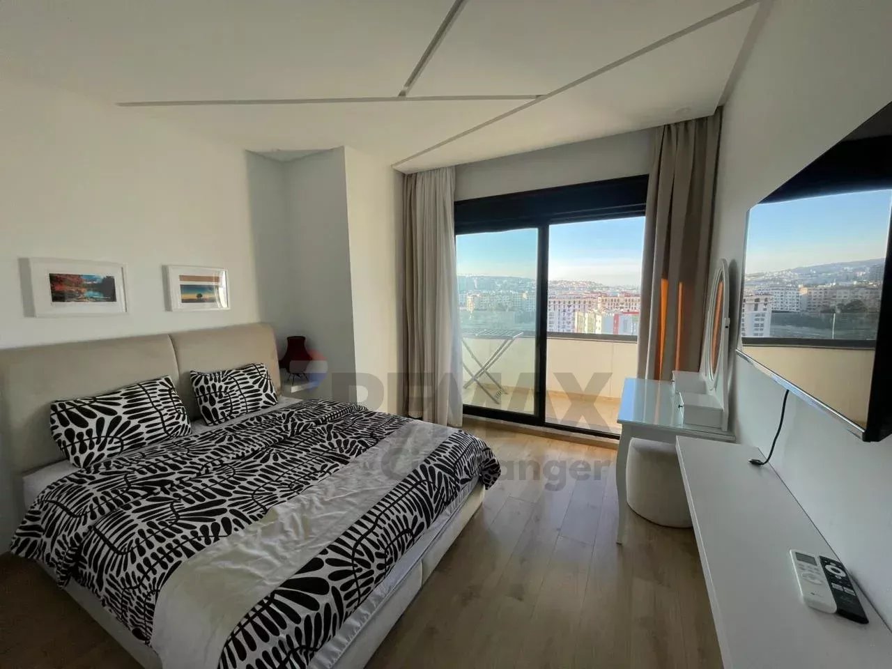 L'agence Re/max vous présente cet élégant appartement résidentiel avec piscine et jardin, haut standing meublé de 93 m², au cœur de Malabata, l’un des quartiers les plus prisés de Tanger.Cet appartement offre :