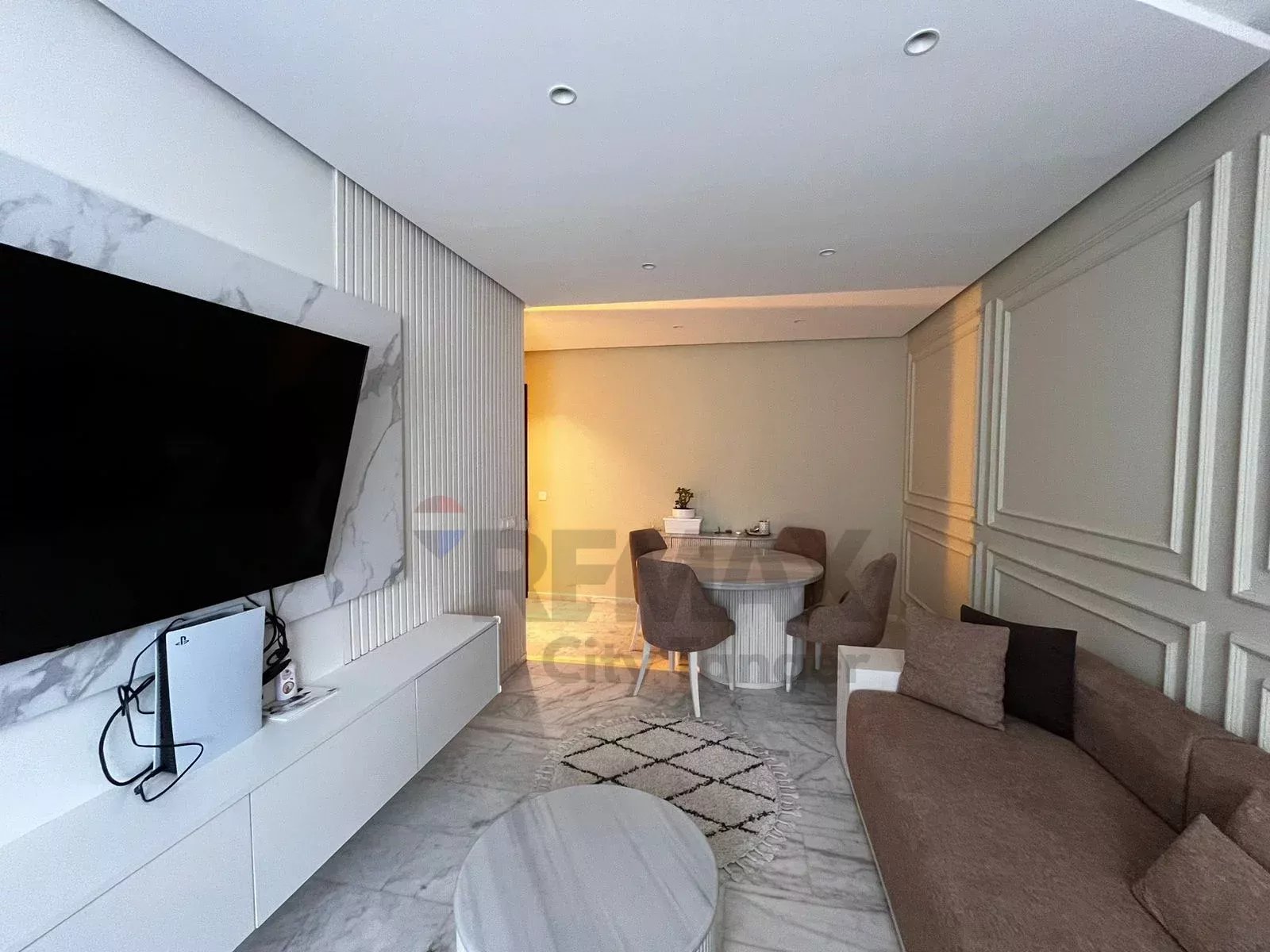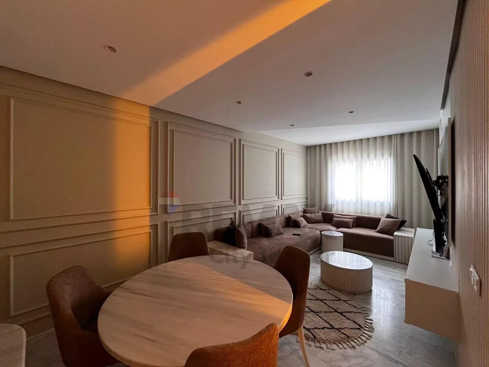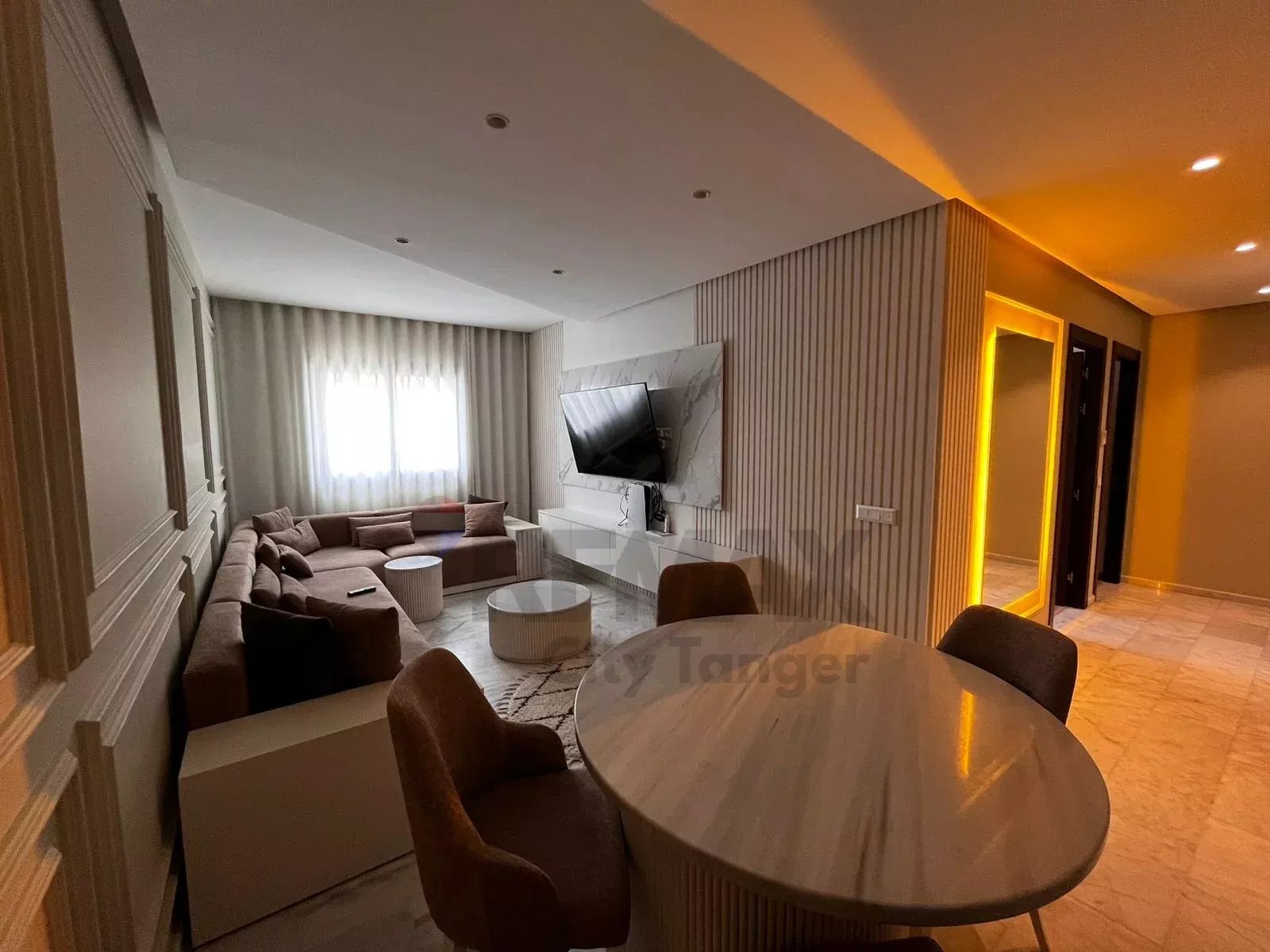 Découvrez ce superbe appartement de 120 m² à Tanger, entièrement meublé et décoré avec goût. Il se compose de 4 pièces spacieuses et lumineuses, dotées d'une technologie domotique avancée, de double vitrage, de grandes fenêtres coulissantes et d'une ventilation double flux pour un confort optimal en toute saison. L'espace de vie accueillant offre un salon convivial avec une télévision moderne, un coin repas raffiné et des équipements haut de gamme pour votre quotidien.Cet appartement dispose d'équipements exceptionnels : adoucisseur d'eau, climatisation, aspirateur centralisé, internet haut débit, carport, ascenseur, buanderie commune, service de conciergerie, interphone et vidéophone. L'éclairage extérieur met en valeur l'entrée et les parties communes de la résidence. Les animaux de compagnie sont les bienvenus, rendant cet appartement idéal pour les familles ou couples avec animaux.