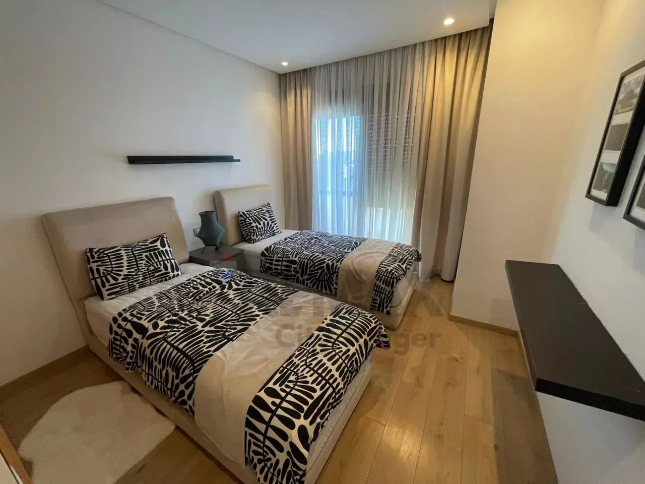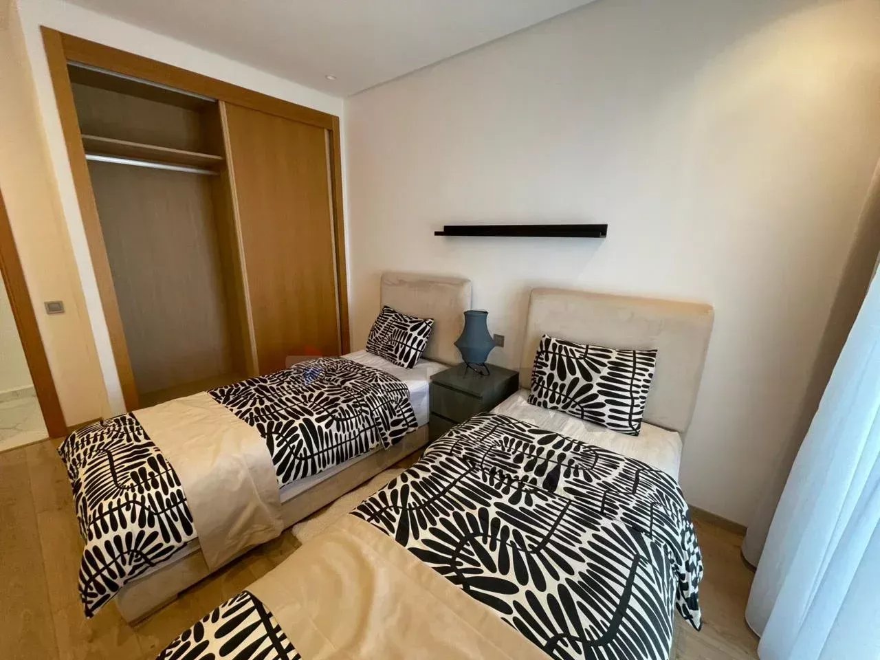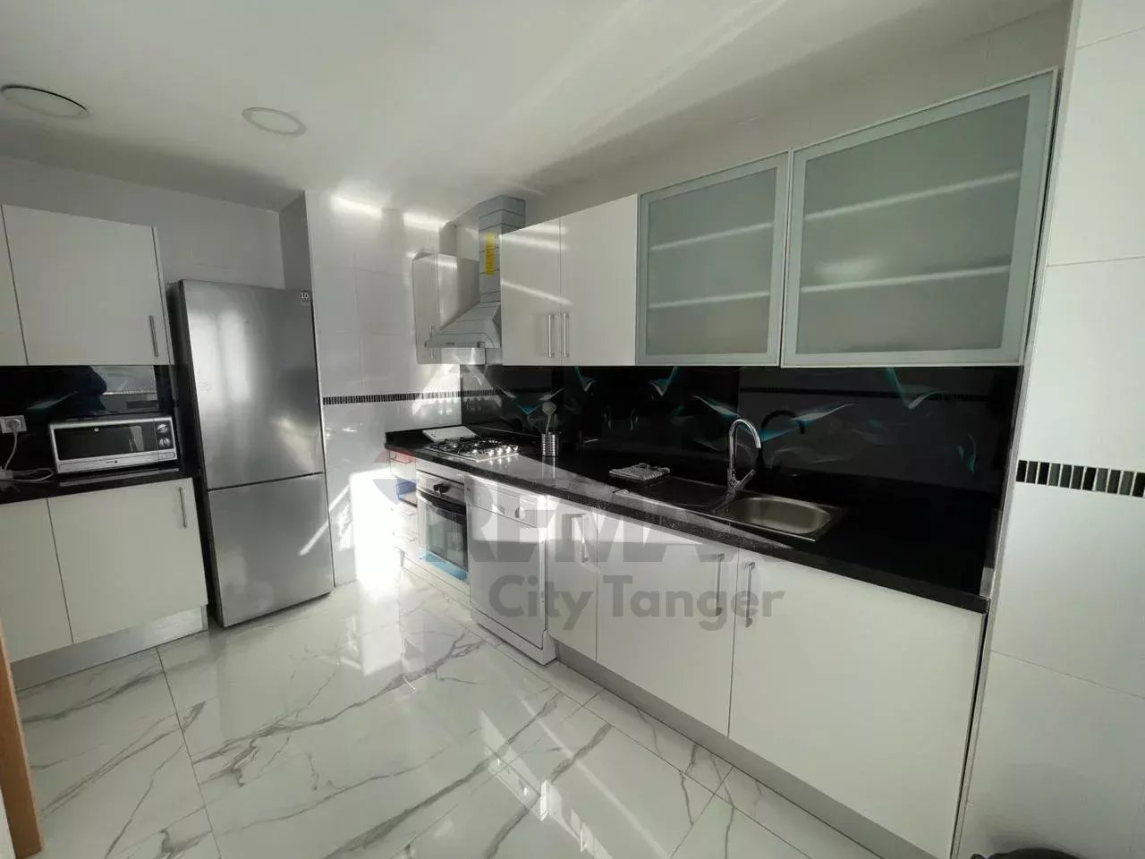 L'agence Re/max vous présente cet élégant appartement résidentiel avec piscine et jardin, haut standing meublé de 93 m², au cœur de Malabata, l’un des quartiers les plus prisés de Tanger.Cet appartement offre :