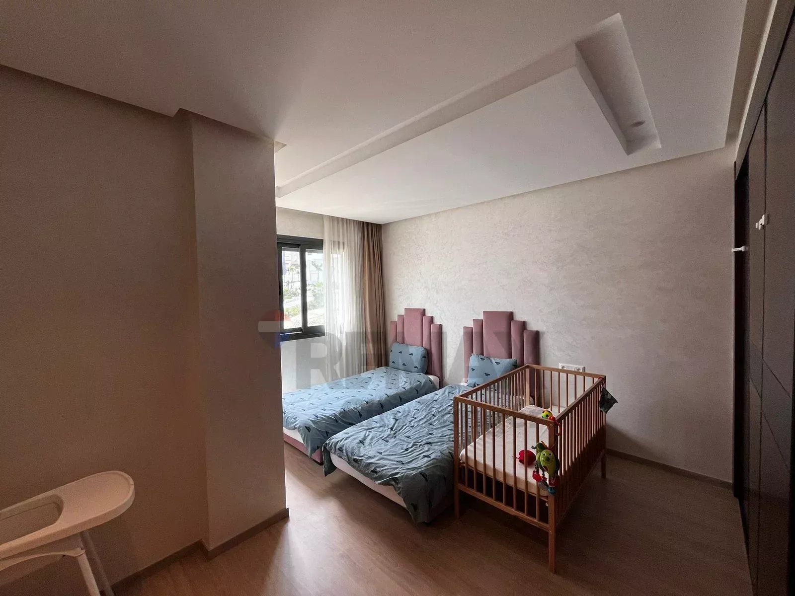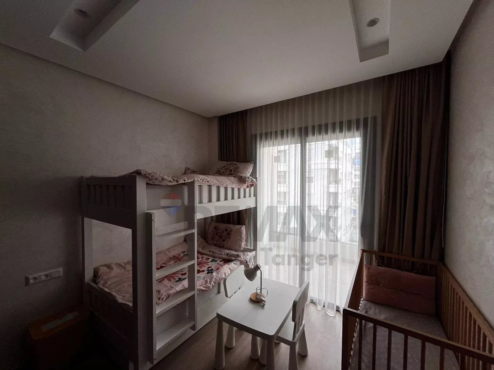 Découvrez ce superbe appartement de 120 m² à Tanger, entièrement meublé et décoré avec goût. Il se compose de 4 pièces spacieuses et lumineuses, dotées d'une technologie domotique avancée, de double vitrage, de grandes fenêtres coulissantes et d'une ventilation double flux pour un confort optimal en toute saison. L'espace de vie accueillant offre un salon convivial avec une télévision moderne, un coin repas raffiné et des équipements haut de gamme pour votre quotidien.Cet appartement dispose d'équipements exceptionnels : adoucisseur d'eau, climatisation, aspirateur centralisé, internet haut débit, carport, ascenseur, buanderie commune, service de conciergerie, interphone et vidéophone. L'éclairage extérieur met en valeur l'entrée et les parties communes de la résidence. Les animaux de compagnie sont les bienvenus, rendant cet appartement idéal pour les familles ou couples avec animaux.